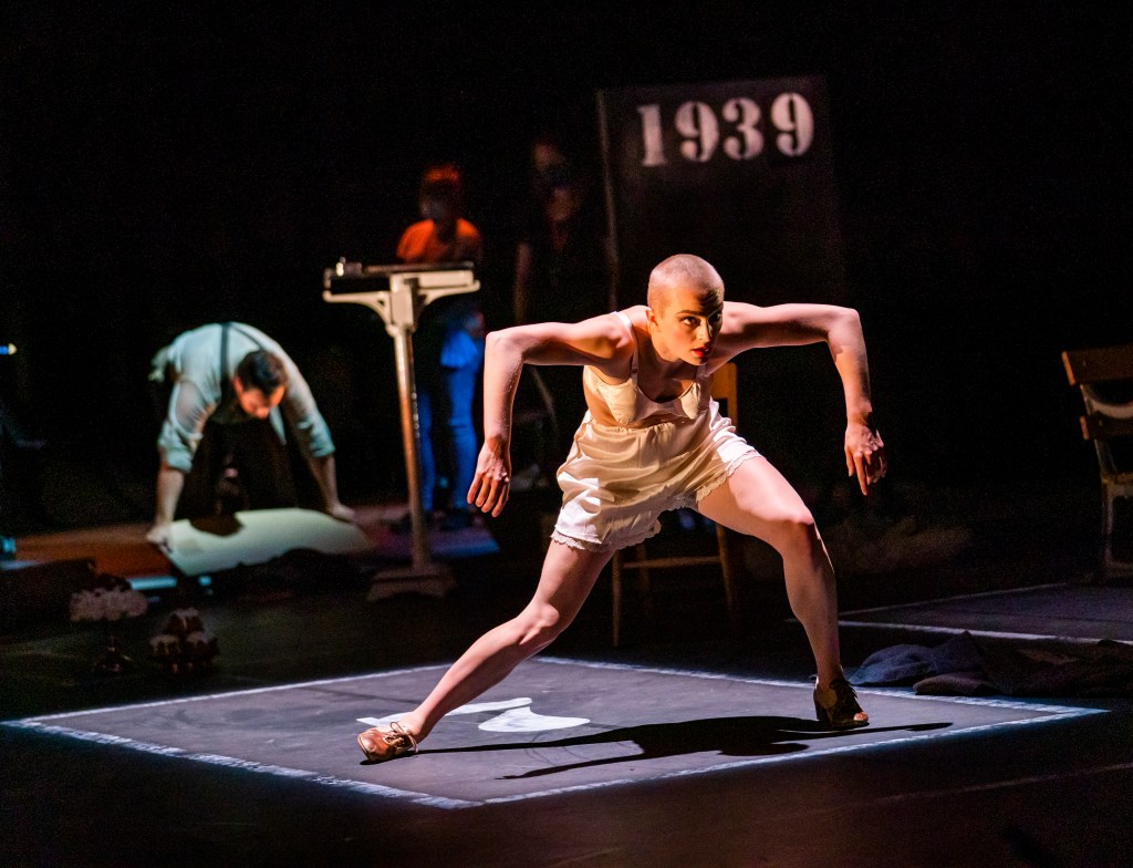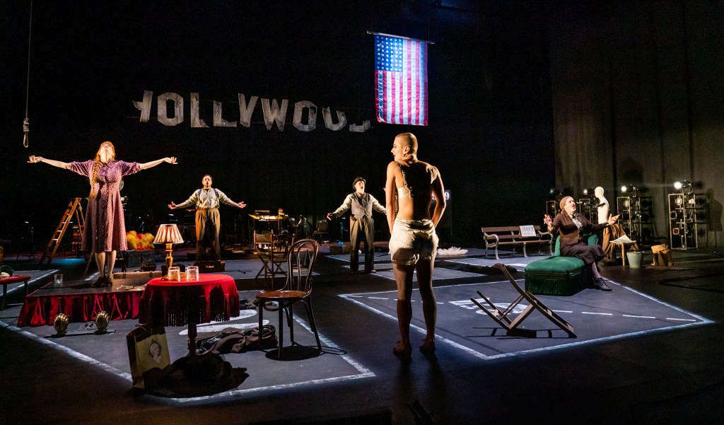 I only had a couple of gripes about the streaming so I will get those out of the way first. There was a rogue camera monitor which appeared a couple of times at the bottom of the screen where the subtitles were displayed, but this was a minor point. The ones which affected my enjoyment and appreciation of the piece were that the sin, the city, and the year were displayed on signs either held by actors when the scene shifted, or on the front of a lectern to the rear right of the stage. At the beginning it was not easy to read the latter one as you could only see the top of the number so it was not clear whether it was 1932 or 1933. In the Los Angeles scene it was not shown at all so we had to assume that it was 1935. Again, as we were at the behest of the cameraman and director, the Baltimore scene was affected by the headlines of the newspapers being read by the family members telling the story of why the girls were making news, which were not all shown.
