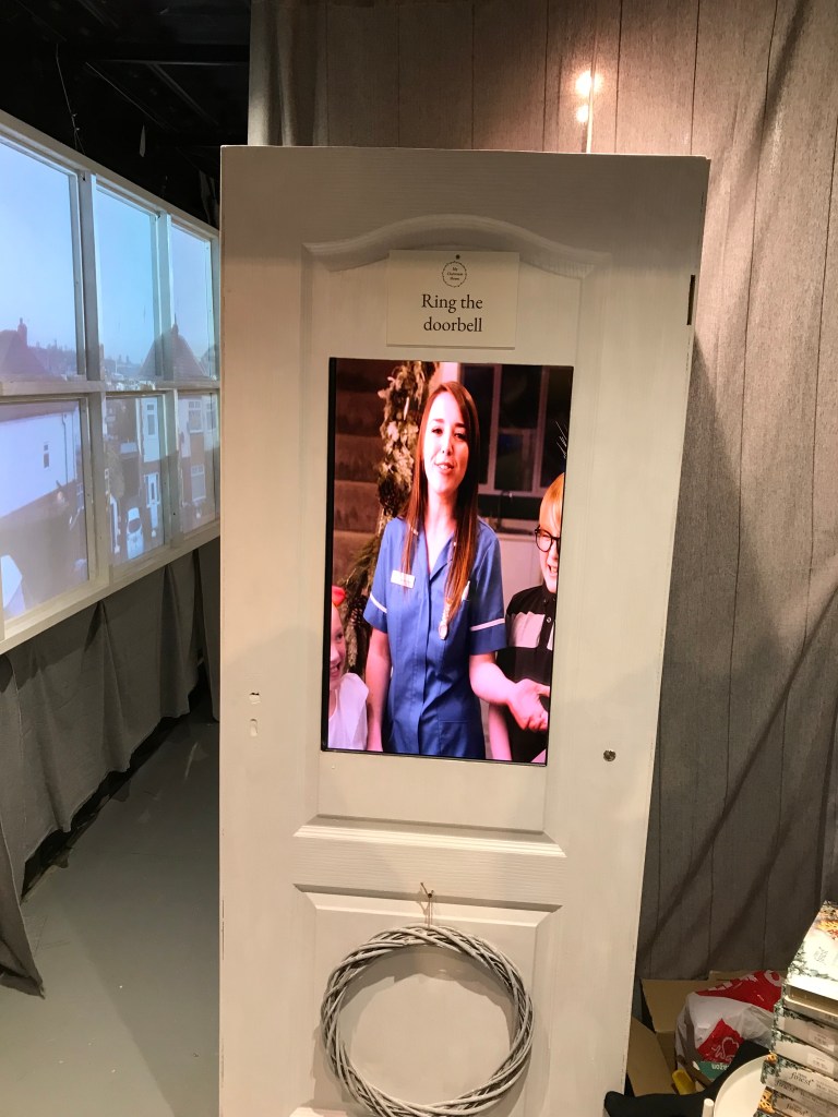 The idea is that you ring the doorbell which activates the installation. You can pick up a cup of coffee and a mince pie and go through into the house. The projection on the left shows the view from their window and we pass a Christmas Tree before arriving at the kitchen where the family are getting some food and goodies ready for Christmas Day.