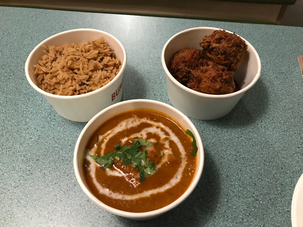 On to the food. I began with two of the three savoury dishes; Sprout Bhajis and Festive Curry. The prices could not be faulted being £4.75 for the former and £7.25 for the latter, which included Jeera Rice. The third dish was the legendary Sprout Bhaji Butty which was a version of my first choice but served in a vegan brioche, just a bit too much for me. This comes in at £6.00 but for every one sold, £1 is donated to Simon on the Streets, the charity for the Homeless of Leeds.