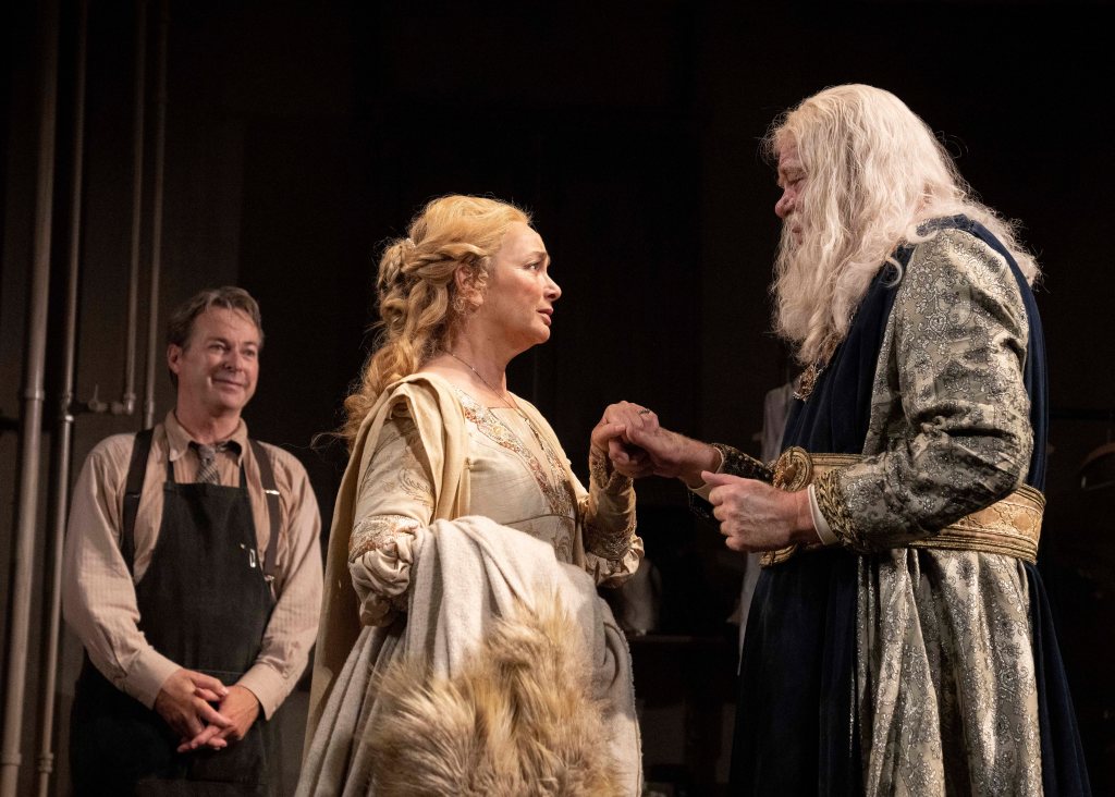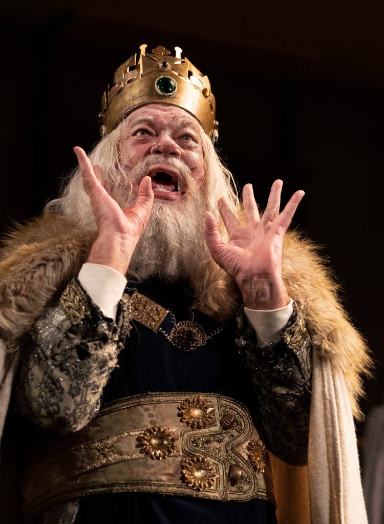 The Set and Costume Designer, Tim Shortall did an excellent job in creating a cramped space on a large stage, yet one which, with the clever use of lighting, designed by Ben Ormerod, could transform into the backstage area whilst King Lear was being performed. A fake curtain facing the audience, was also a nice touch.