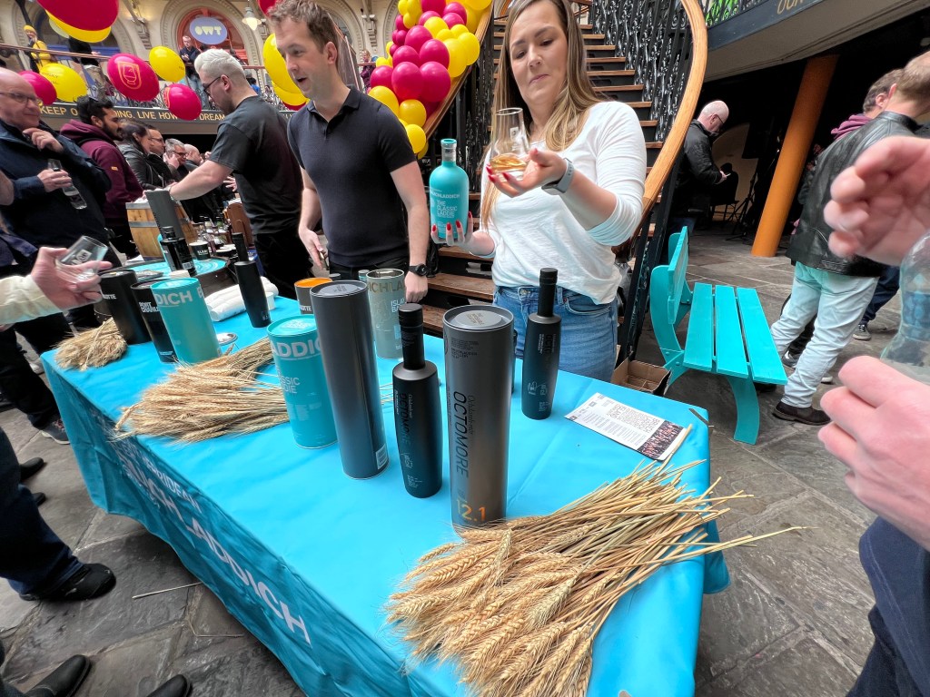 Leaving taste aside, although it was rather nice, my prize for the coolest bottle designs goes to Bruichladdich Distillery whose black and turquoise containers brought the spirit’s image up to date with not a bagpipe or stag at bay in sight.