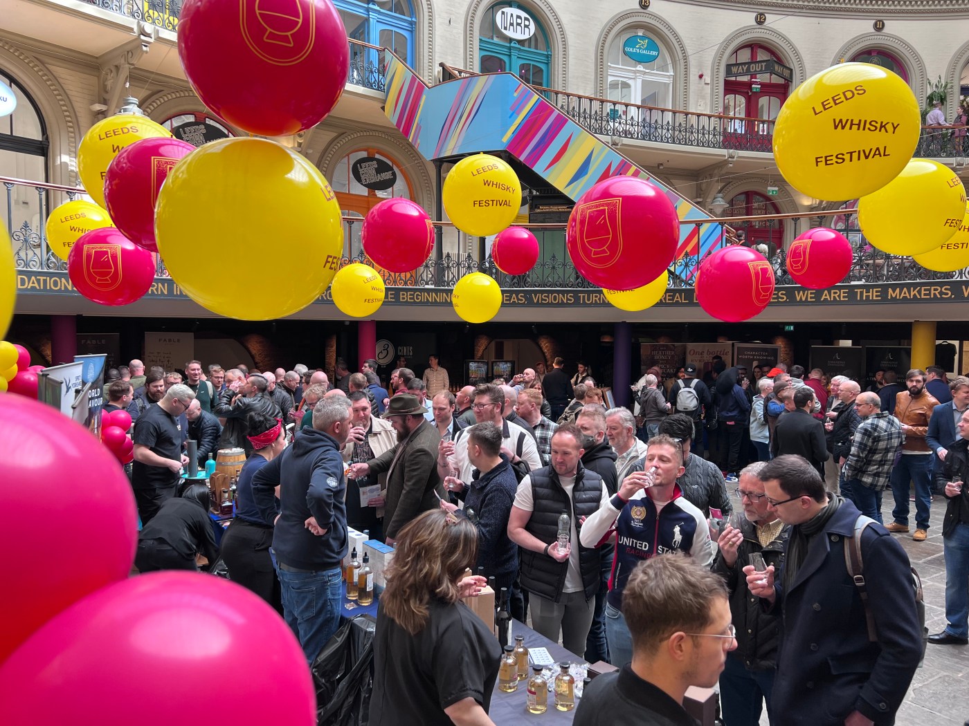 The format of the Whisky Festival was different to those of the gin and rum versions which began after the shops in the Corn Exchange had shut and occupied the whole of the building. This event was in two time slots; noon until 4.00pm, and 5.00pm until 9.00pm, so, as life continued as normal on the ground floor and balcony of the building, we festival goers were ensconced in the lower ground floor oblivious to goings on above. Some of us were oblivious to most things by 4.00!