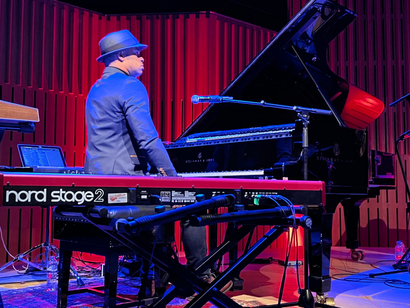 Despite the music taking us to the warmer climes of the Caribbean, the title of his latest album Yeshun, relates to water and is a contraction of the names Yemoja, the goddess of the seas, and Shun, goddess of the rivers. He told the audience that he wanted to compare the vitality and fluidity of water with that of music.
