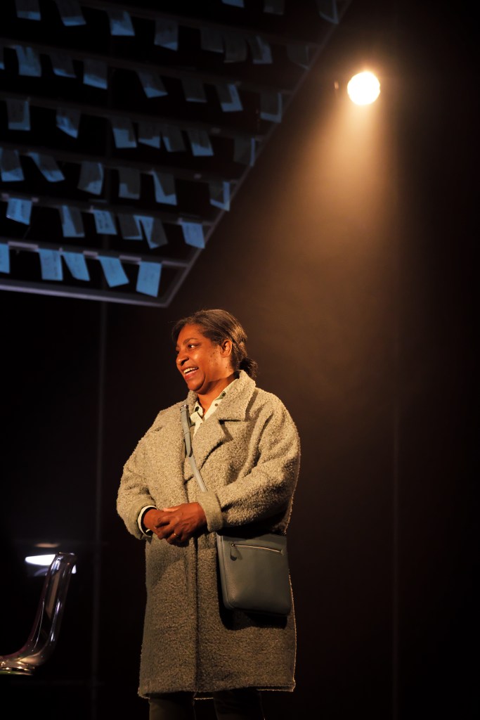 There is quite a large creative team so please click on Credits from the link below. I will just pick out the Set and Costume Designer, Francis O’Connor whose imaginatively minimalist set added to the atmosphere and the way in which the furniture moved on and off the stage without the need of human assistance, meant that the audience’s attention was not diverted from the action. The post-it notes were also a great touch.