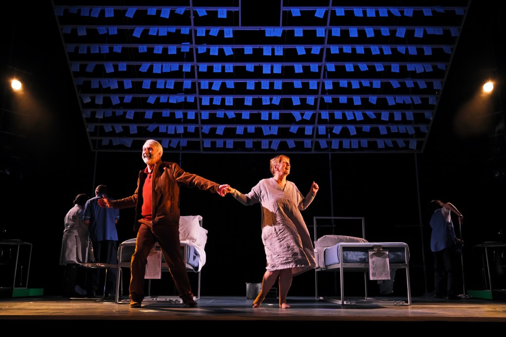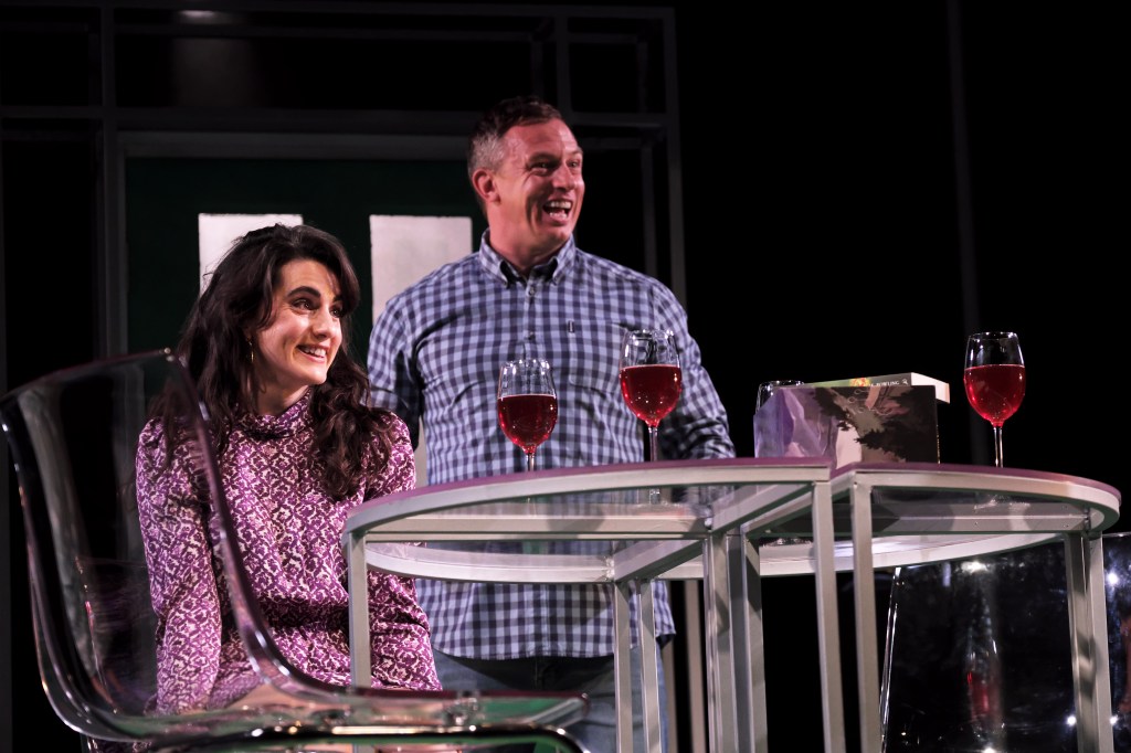 The way in which the situation is set up is very imaginative in that the opening sees Maggie and her husband, Gordon, waking up one morning. As they get out of bed a post-it note flutters down from the array of those stuck to a rack above the stage to remind her of things to do. This one is to inform her that their son, Michael, and his new girlfriend, Claire are coming as it is his birthday. Michael has not been made aware of his mother’s condition but this has to be done when Maggie keeps referring to Claire as Emily, Michael’s ex. Michael has trouble coming to terms with the situation, whereas Claire is only too ready to be of assistance.