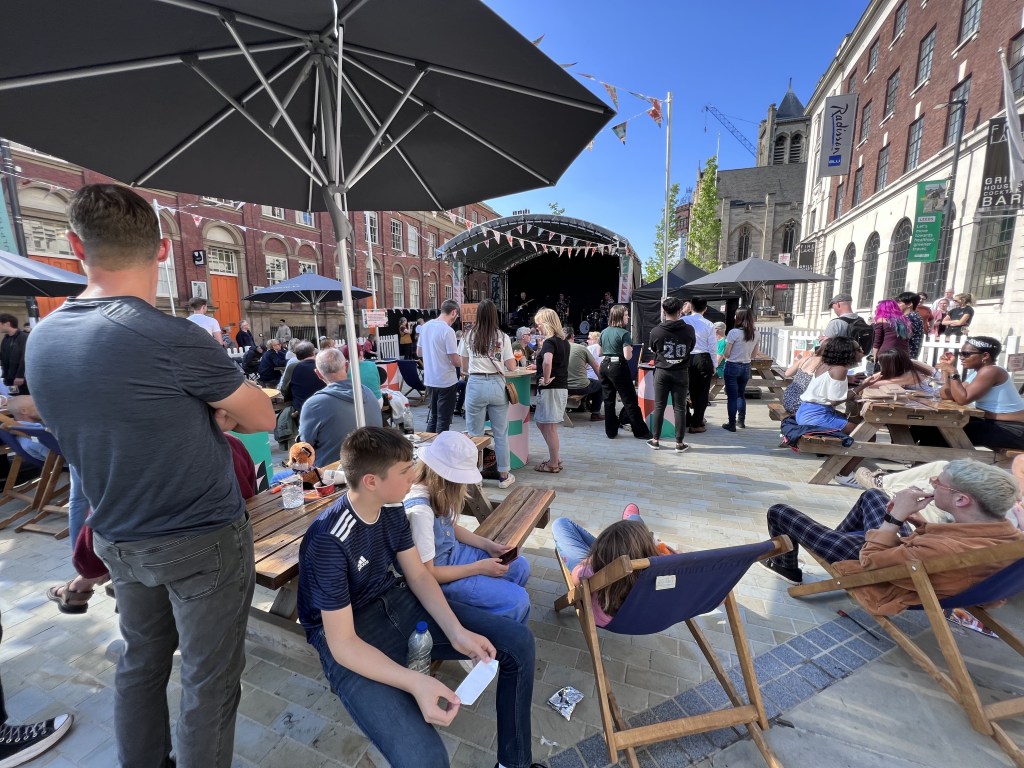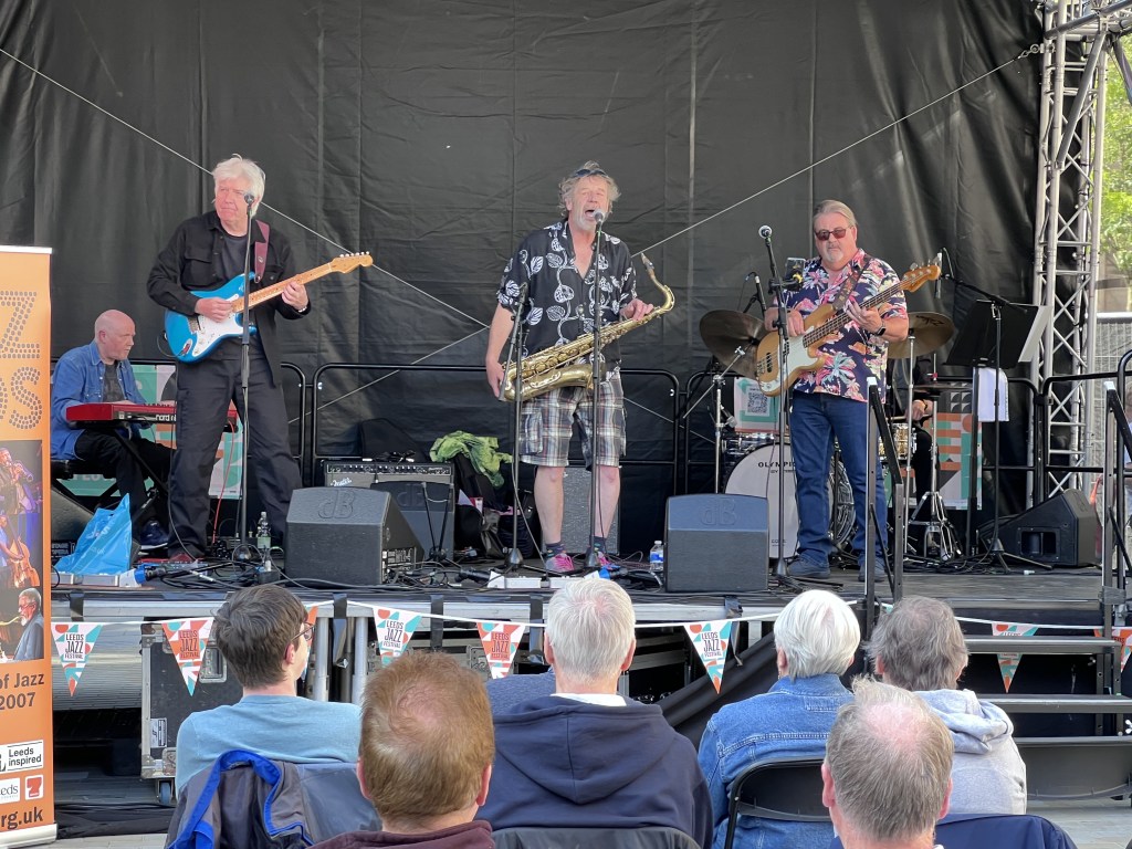 Leeds is staging its inaugural Jazz Festival this year at various venues throughout the city. I got into the swing – literally – at the Free Stage on Cookridge Street on a sunny Friday afternoon. The whole shebang started on 1st June, so I had arrived fashionably late, but there are still a lot of events before it draws to a close on Sunday, 12th.