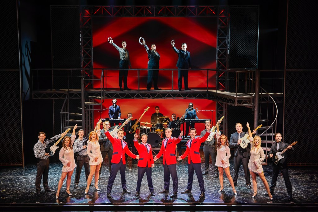 The original line-up, of Frankie Valli – played by Michael Pickering, Nick Massi – Lewis Griffiths, Tommy DeVito – Dalton Wood, and Bob Gaudio who also wrote most of the songs – Blair Gibson, stayed together until 1965 when Nick Massi was replaced by Joe Long. Half a dozen of the songs in the show were from the later period but who cares, it is a musical not a documentary.