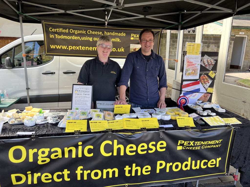 Finally I had a word with the lovely people at Pextenement Cheese Company to find out about their organic cheese range. It turns out that one of the stallholders, with whom I spoke on my last visit, was on holiday and these are one of his suppliers. Once again the mighty metropolis of Todmorden was in evidence as this is where their farm is based.