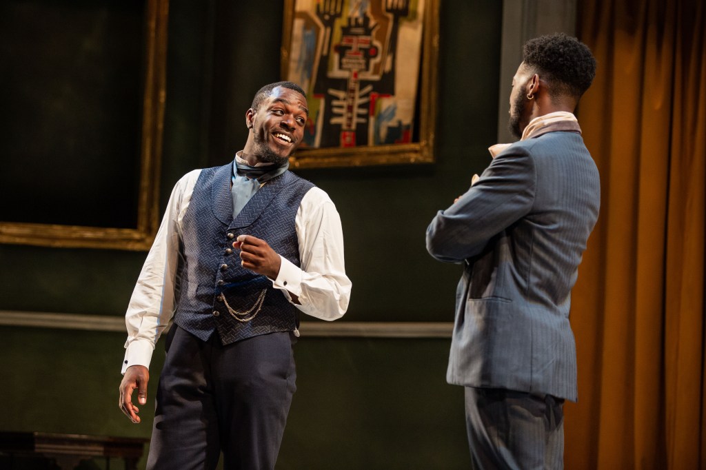 The cast was entirely made up of black actors, and BSL interpreter, which changed the dynamic of the piece from the one I understood it to be. The two main leading men; Justice Ritchie as Jack Worthing, and Abiola Owokoniran as Algernon Moncrieff, were far too cool and so unlike the Jacob Rees-Mogg types I always associate with the play. There was one vignette in which, after receiving positive signals from their love interests; Gwendolen, Adele James; and Cecily, Phoebe Campbell, they indulged in an NFL touchdown type celebration with an elaborate hand-slapping routine. I doubt Mr Wilde had that in his stage directions. I also doubt that he would have foreseen a kiss between Miss Prism and Dr Chausuble, a male cleric in the original, when played by two females Joanne Henry and Anita Reynolds respectively.