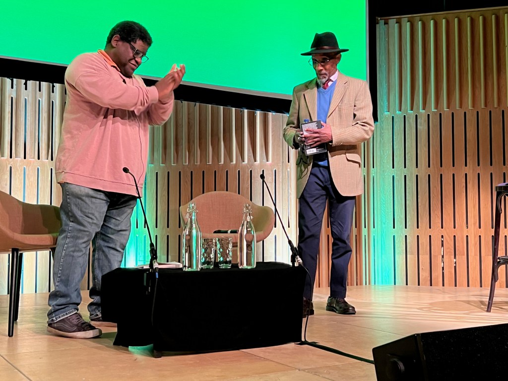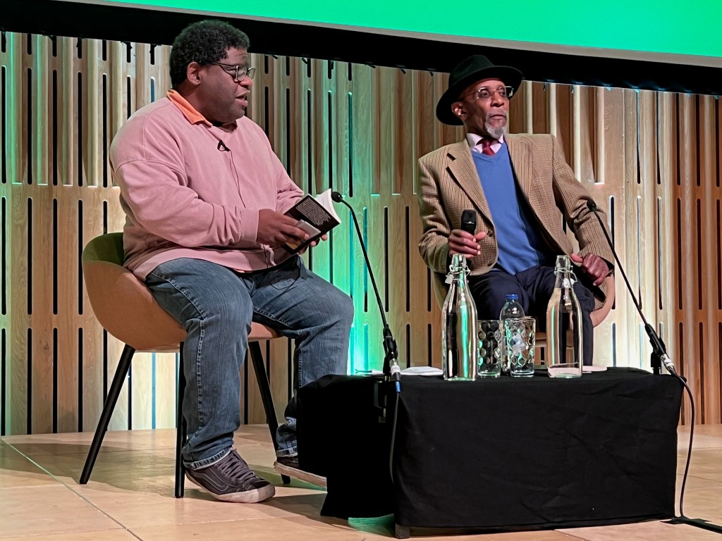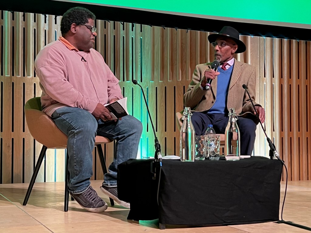 Following his introduction, Mr Johnson took to the stage and both settled down in armchairs for an hour and a quarter of chat. I couldn’t get over how well he looked, and very dapper. His tone was so laid back and relaxed it was hard to believe that this was the same firebrand activist from the 1970s. It must be pointed out, especially to my loyal American readers, that the British Black Panther Movement, although involved in several demonstrations ending with run-ins with the law, were not the extreme organisation you will remember from your side of the pond. The basic aims were similar, however, i.e. combatting police brutality and racism.