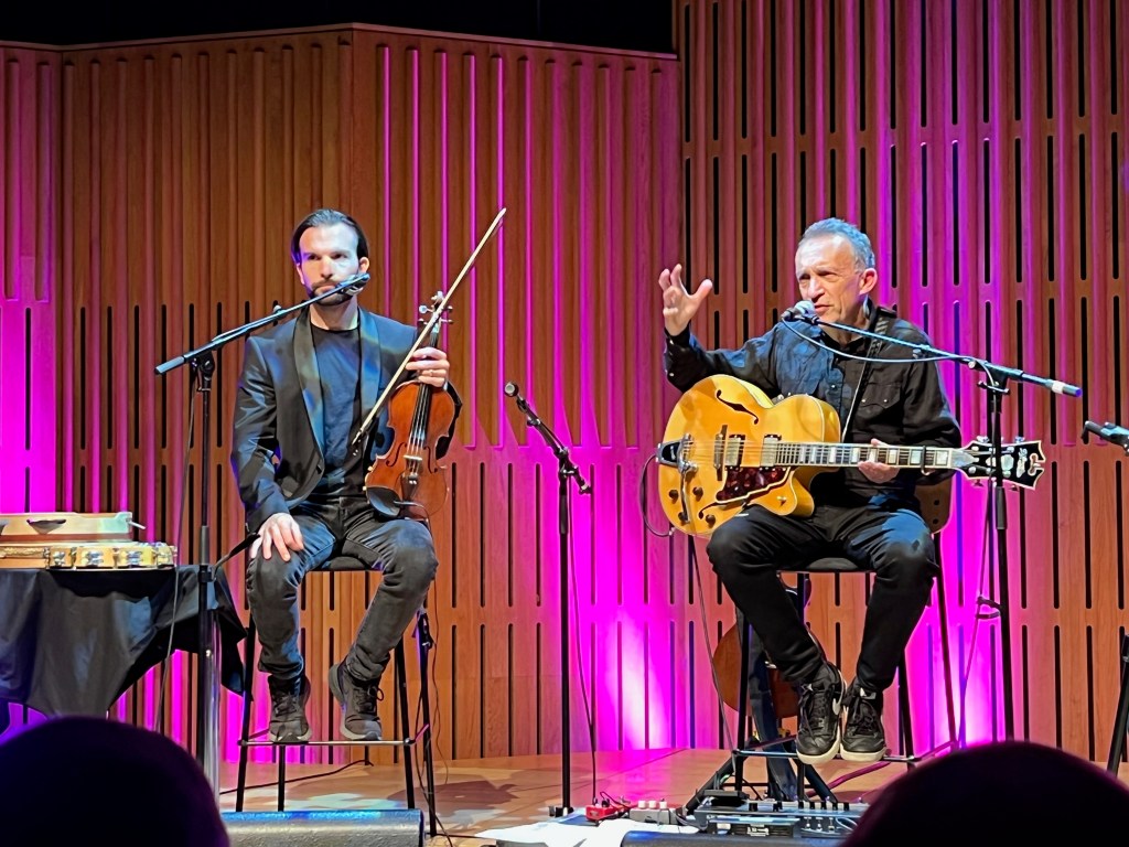 Justin Adams; a talented guitarist, producer and composer and Mauro Durante; singer, violinist and percussionist, regaled us with a selection of tunes and songs from the latter’s home country of Italy, which had more than a hint of the North African about them. The publicity for the pair states that the form of Italian folk music they perform is called Taranta ‘which transcends the blues’.