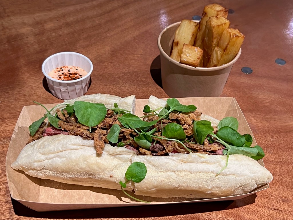 The second space is filled by guest traders, and tonight it was Don’t Feed The Dog, who actually did feed this old dog, and very well too. This is the Boxing Day Sub with roast beef and shoestring onions. The 15 hour chips are to die for.