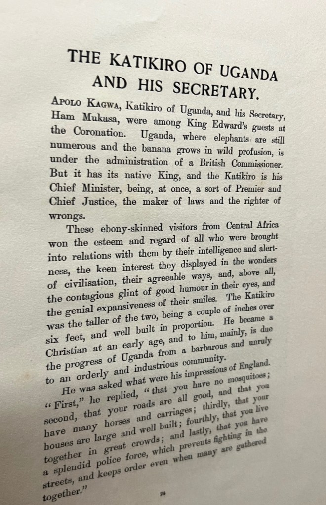 During the preview night the artist undertook an interview with The Tetley Artistic Director, Bryony Bond, during which she said that she was searching for a travelogue linking the UK and Uganda but the only one she could find was a diary by Ham Mukasa, written in 1902 when he accompanied the Bugandan Prime Minister to London for the coronation of King Edward VII. Buganda is the name of the kingdom of the Baganda Tribe of Uganda.