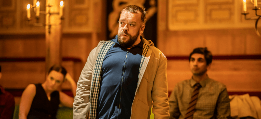 The cast comprised ten players and each, except for the magnificent Oliver Johnstone as Henry V, played multiple roles. Not only that, but they would be French one moment and British the next, sometimes a quick change of shirt would help, but every entrance needed to be announced by the actor, for instance Dharmesh Patel would appear on stage with the words, ‘Enter Scroop/Pistol/Montjoy,’ so you had to be on the ball or things could get confusing. There also seemed to be an inordinate amount of coughing amongst the audience which didn’t help. Similarly the Act, Scene and Location were announced when changed. A tool which worked well under the circumstances but could be thrown in seemingly at random.