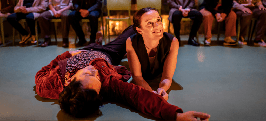James Cooney (Prince Thomas/Orléans/Captain Gower) and Eleanor Henderson (Prince Louis/Queen of France/Le Fer/Ambassador 1) in the gay/straight scene.