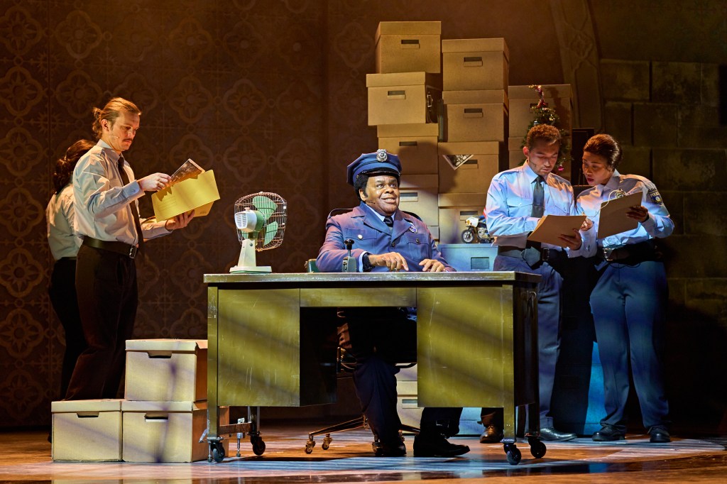 The music and songs, by Alan Menken and Glenn Slater were superb, which was just as well as the show was a succession of set pieces rather than a flowing narrative. This did lend itself to some great song and dance numbers as the set was constantly changing to accommodate them. My favourite was I Could Be That Guy, when ‘Steady’ Eddie, the boring cop, dreamt about being a disco god. He began his fantasy dressed as a patrol cop but he leapt onto the desk in the station where he was joined by some uber camp colleagues in scanty uniforms covered in glitter who ripped his jacket and trousers off to reveal an Elvis in Las Vegas outfit in which he sang most of the rest of the song. The masterstroke was when his fantasy turned back to reality and the glittery cops ripped off his catsuit to reveal another police uniform beneath.