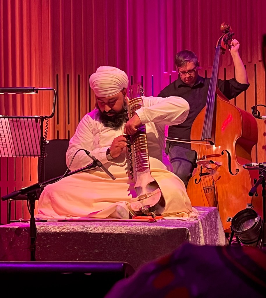 It was not as though Jasdeep was without form, I first saw him at Huddersfield Town Hall in February, 2020, when he premiered Arya: a Concerto for Sitar and Orchestra which was incredible. He did have a slight advantage in that the orchestra in question was that of Opera North. Since then he has performed in various settings and his recordings can be heard occasionally on Radio 3. He then went on to write an opera – as you do – co-writing Orpheus which was staged by Opera North last October, another masterpiece. Anyway, the album got made and what we witnessed on Wednesday was the first date on the promotional tour. Now that I have declared my interest I will review the concert itself. About time I hear you say.