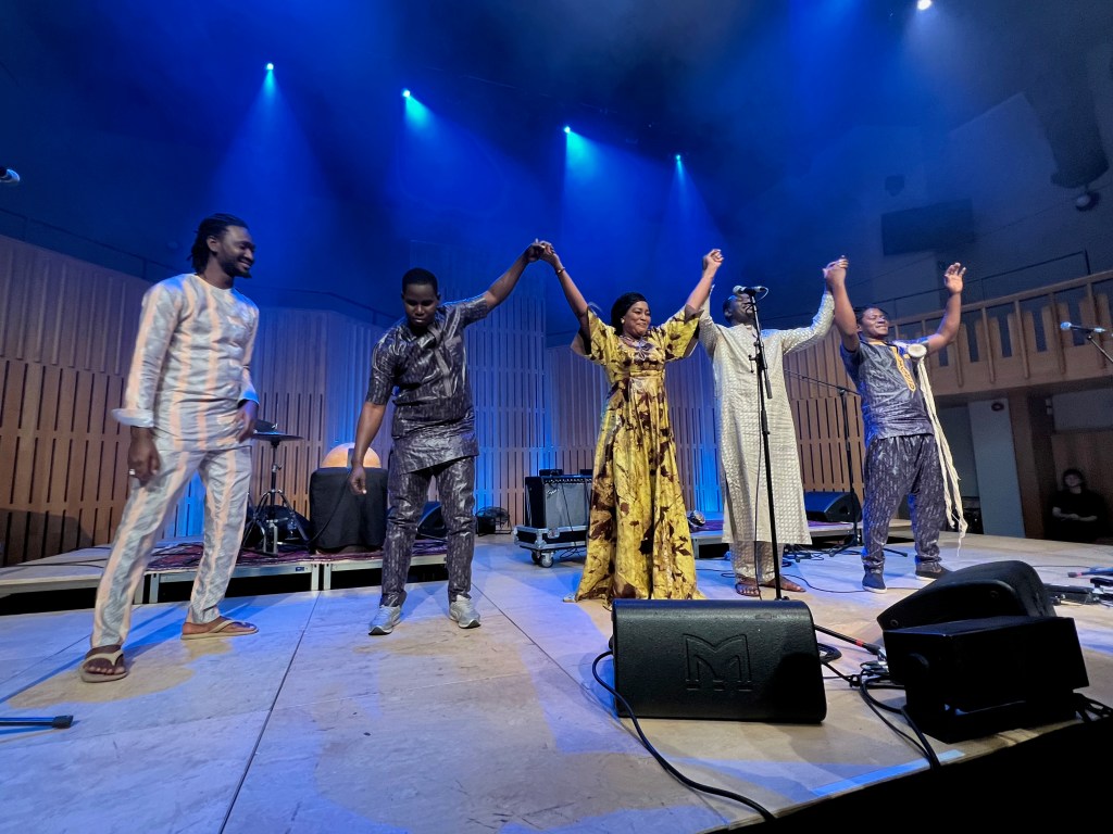 On the subject of dancing, Mahamadou Tounkara, whose solos on the talking drum were incredible, was no slouch when it came to strutting his stuff, even turning his back on the audience to give us the full effect of his twerking. How anyone could get so many different notes from a drum with such a small surface area is beyond me. It is also without my comprehension how he doesn’t break several fingers whilst playing it as it is struck like a bongo with one hand and simultaneously beaten with a bent stick with the other.