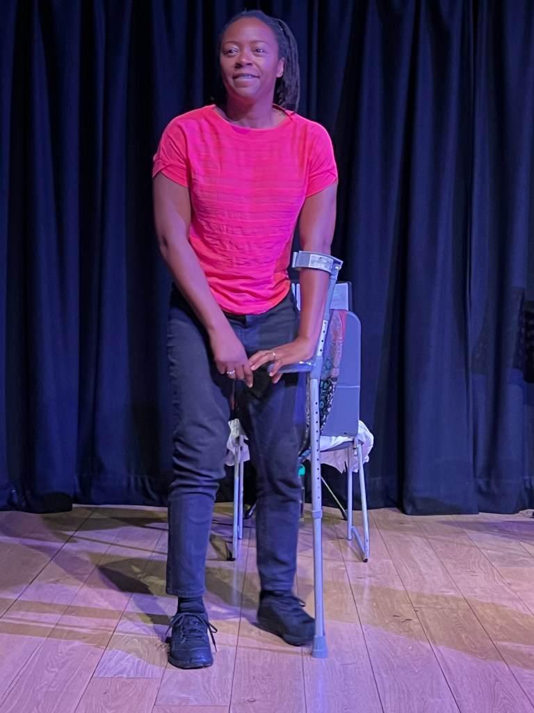 The piece, often delivered in broad patois, the acting sublime by all concerned. Even though the performers were reading from scripts and had no scenery and only chairs for props, they were able to transport us to both happy and devastatingly sad places. Towards the end Laurietta Essien, who played Janette, had tears streaming down her cheeks, as did most of the audience, myself included.