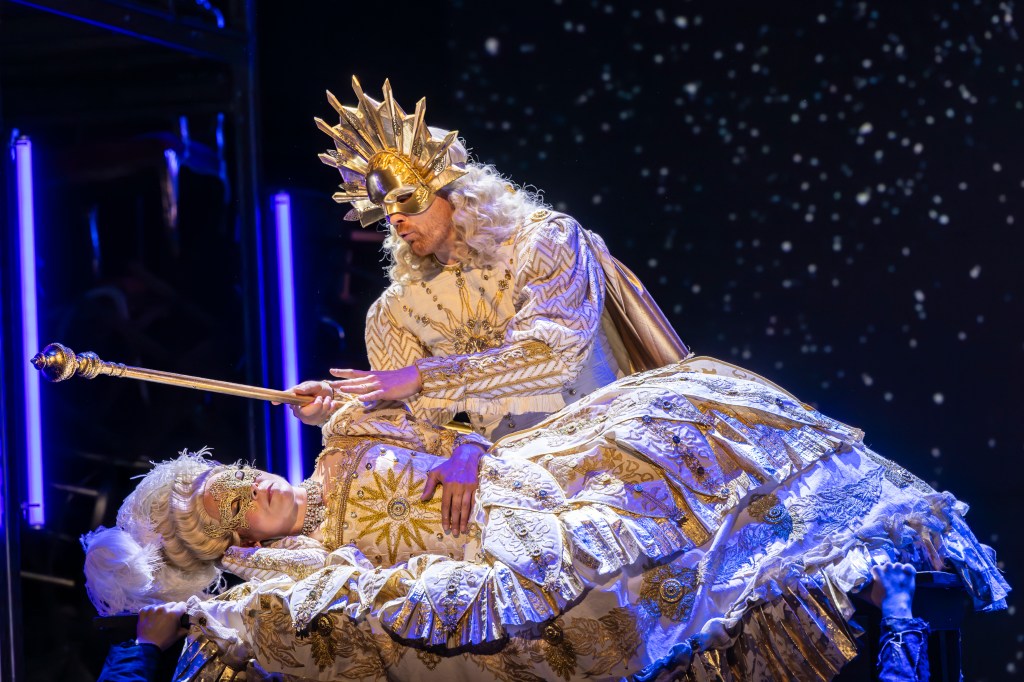 James Laing as Tousel Blond, James Hall as Strumpet Ginger with dancers; Ben Yorke-Griffiths, Rose Ellen Lewis, Jonny Aubrey-Bentley and Ruby Portus.