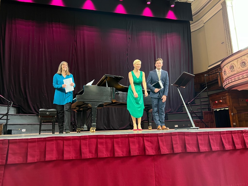 It was lovely to get back to Dewsbury Town Hall for one of their lunchtime concerts. It is like going to a gig at the village fete or the WI, with home-made soup, sandwiches and cake, followed by a presentation. Instead for a ‘humorous’ speech from the vicar, however, we were treated to a trio of performers with links to Opera North, which was far more inviting. There was no chance of a rain intervention either.
