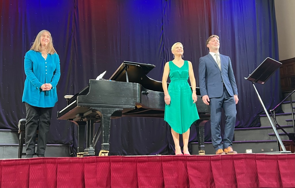 The event was originally billed as A Tenor, a Soprano and Piano but Dafydd Jones had been replaced by Dominic Sedgwick, hence the amendment. I am sure that Mr Jones is excellent, Opera North never book anyone who isn’t, but I must admit to preferring the lower register to add a bit of warmth to the proceedings. Mr Sedgwick is currently appearing as Sid in Opera North’s production of Albert Herring, being one of their featured young artists. The soprano was Bibi Heal, who I remember first seeing perform in County Arcade in Leeds Victoria Quarter as part of Purple Tuesday, much to the surprise of shoppers and passers-by. She has recently been touring with her Song Surgery in which she writes prescriptions for the audience for music she feels will make them feel better. Heal by name, heal by nature then. The pianist was Opera North’s very own Annette Saunders.