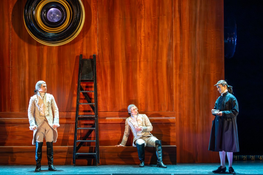 Another feature which enhanced my enjoyment of the production, directed by Tim Albery, was the dialogue. It had been translated into English but probably not literally, as many of the lines rhymed, some of them very cleverly in a Cole porter kind of way, and there were also some phrases which I doubt were conventional 18th Century German. This meant that the comedic element was more relevant to a 2024 English audience. Although the diction of the singers was superb, it was good to have the libretto on display screens as, on some occasions, two singers would be delivering different lines at the same time.