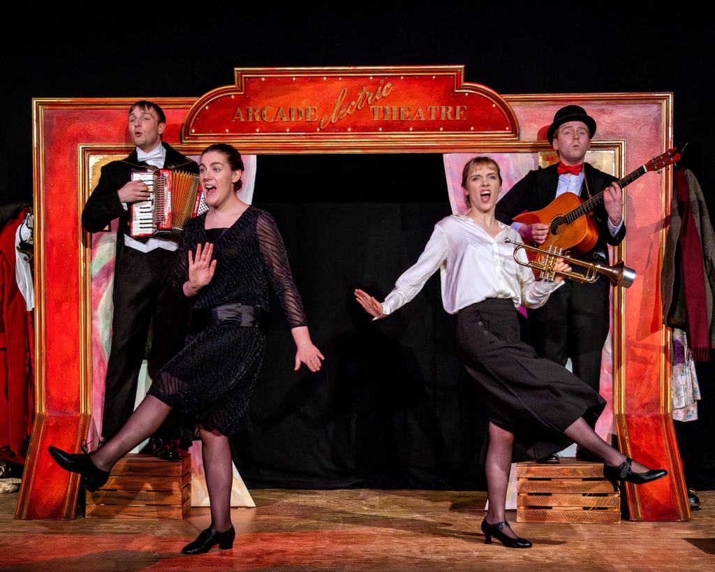 The show itself was performed by the quartet of Eddie Ahrens, Georgina Liley, Lauren Robinson and Mark Emmons and took the format of a Music Hall show from the early part of the last century. It seemed odd to see that the set was a mock-up of a theatre as we were in a real theatre, but, as this is Mikron and future performances take place at venues from an allotment to a fish restaurant, they have to keep it simple, and constant.