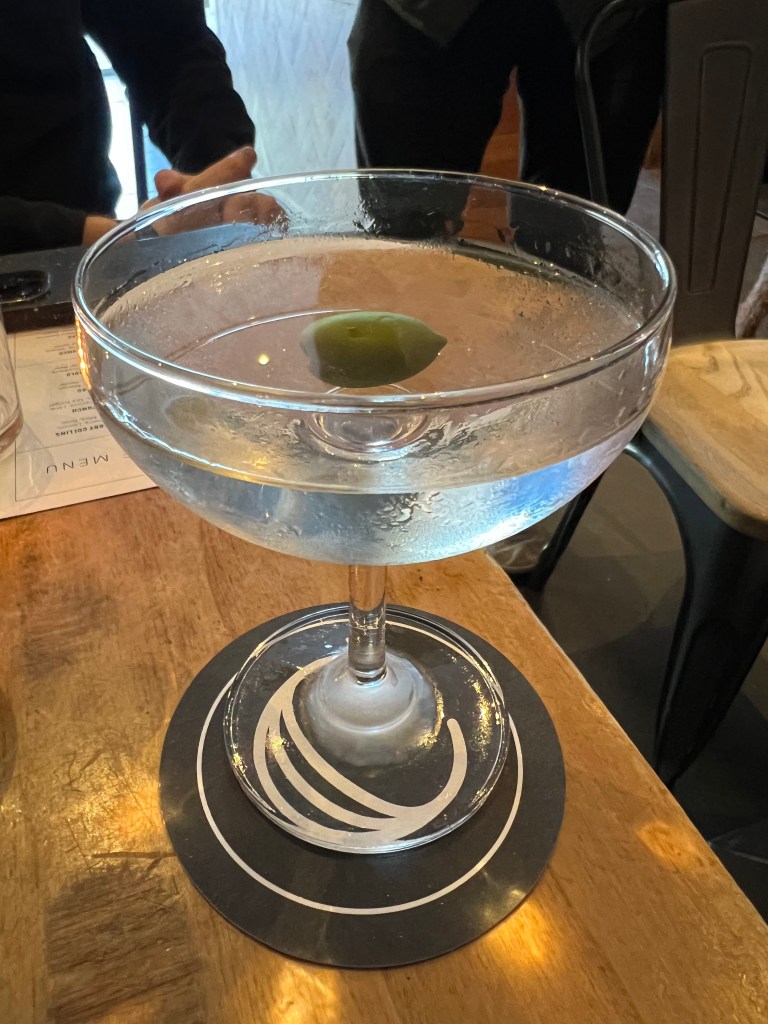 The Cornish Gouda from George & Joseph Cheese Shop just over the road and a deceptively large chunk of SKOG Rosemary and Sea Salt Focaccia, providing four portions, enabling us to go another couple of rounds in a tag match with the cocktail menu! Both elements were delicious and the olive oil was a bit special as well.