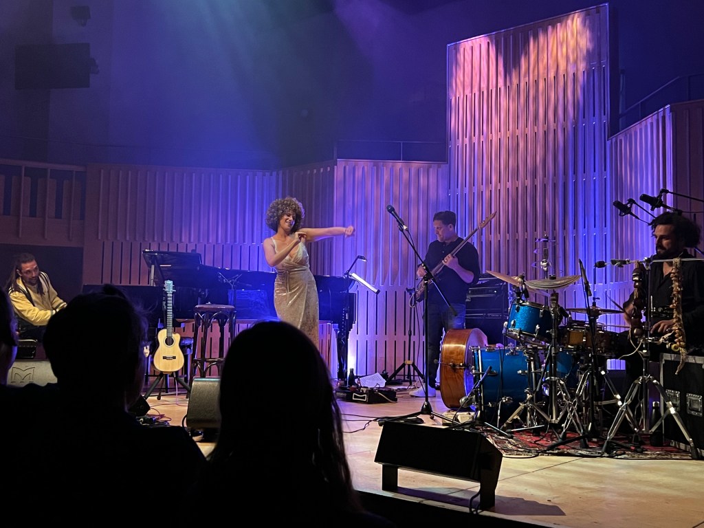 I do like modern jazz and the musicians were of the highest quality, the pianist wrung every ounce of sound out of the room’s Steinway grand piano, including the now almost mandatory leaning over the keyboard and plucking the strings in the body of the instrument, the bass player was superb and used both the electric version and the acoustic double bass, an instrument I love. It has a much more rounded sound and is more expressive. The percussionist was a master, with not just a drum kit but several other pieces of equipment with which to make sound by bashing them. In one solo he discarded the sticks for a while and played everything by using just his hands. Cyrille Aimée is quite the musician too giving us the benefit of her prowess on the ukulele. She also had a burst on the kazoo, but it was inaudible, possibly something she would have noticed had her monitors been switched on.