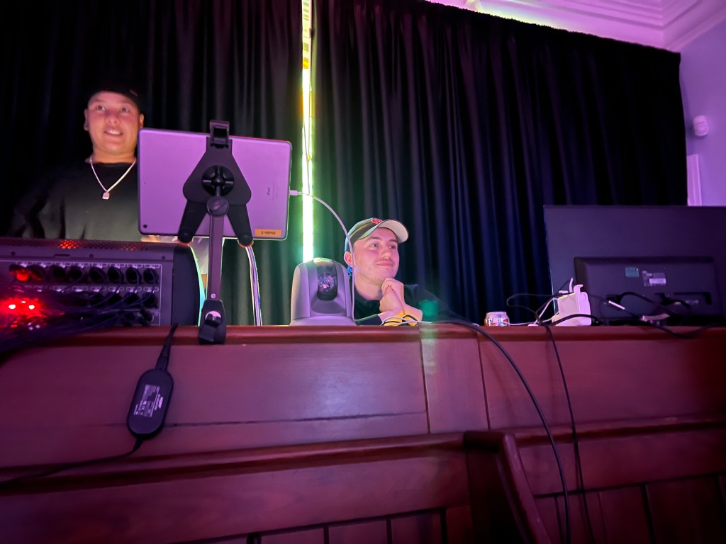 The technicians were Jack Walker, lighting technician and Mushana Aniysa Alleyne, projectionist., who also provided vocal support from her desk at the rear of the hall.