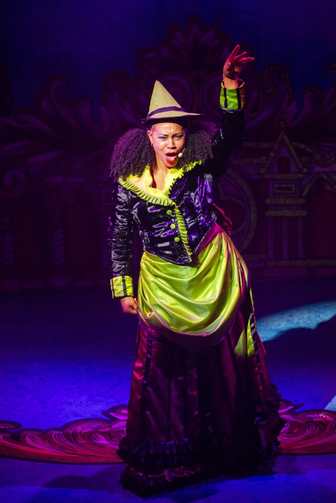 Ms Sandi’s singing was as much a revelation as the comedic talent of the leads. Looking at her bio in the programme, she has appeared in several adverts, for companies such as McDonalds, DFS and Wrigley’s, but what is most impressive is that she has played the young Tina Turner in a SwissCom ad – alongside the remarkable Mrs Turner herself! I am not surprised as her voice was phenomenal. The villainous image was enhanced by her costume which echoed that of Elphaba in Wicked.