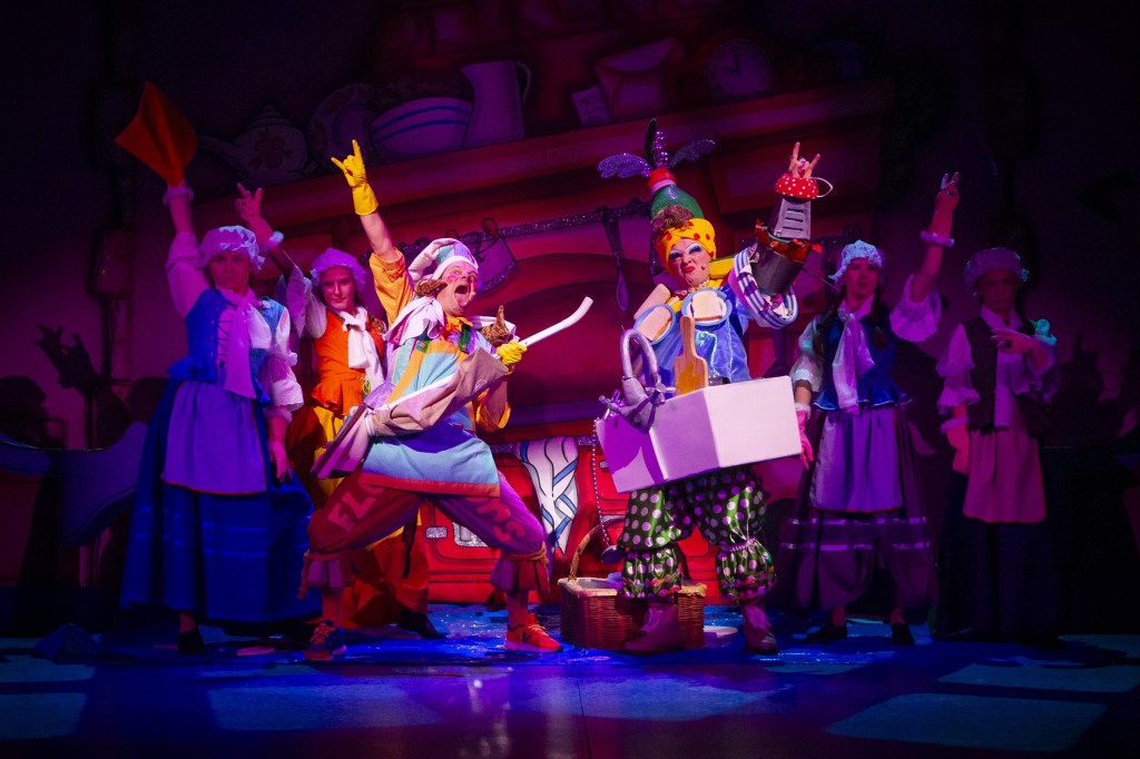 So, that is the comedic part covered, the love interest was obviously between The Beast and Belle, The Beauty. Colin Kiyani as the Prince and The Beast, was superb, being just on the right side of scary so as not to not give the kids sleepless nights, I didn’t get a wink but that might be because of the prostate. His singing was also very good indeed. Anna Campkin, lived up to her name as Beauty/Belle, also possessing a fine voice and great terpsichorean skills. It can’t be easy playing the sweet, innocent girl when those around you are leaving the audience either rolling in the aisles or quaking in their boots. Speaking of which, a pantomime is not a pantomime without a villain. Here again, we had something unusual in that the role was filled, not by some moustache-twirling cad but by a woman, Mona Lisa the Sorceress, who was probably a bigger threat than any bloke could ever be. Joanne Sandi had the part well and truly nailed. She was superb at giving as good as she got when her every appearance was greeted by loud booing – that’s a Bronx Cheer to my Transatlantic readers.