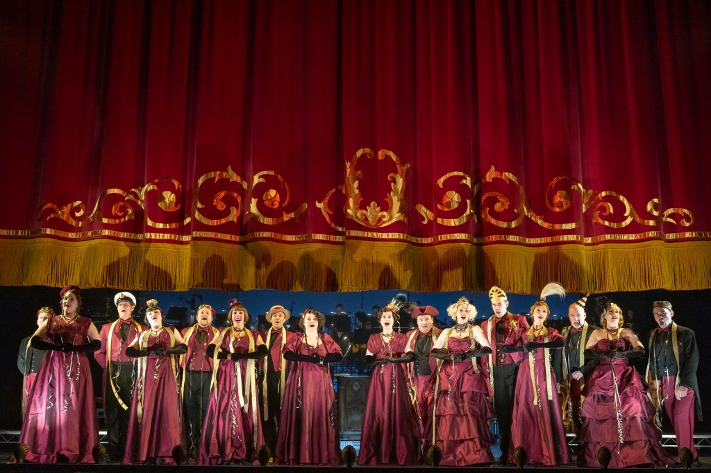 Having the wonderful Orchestra of Opera North, conducted by James Holmes, situated on stage throughout reminded us that this was a show, rather than a dramatic piece, and it also gave them their moment in the spotlight rather than their being confined to invisibility in the pit.