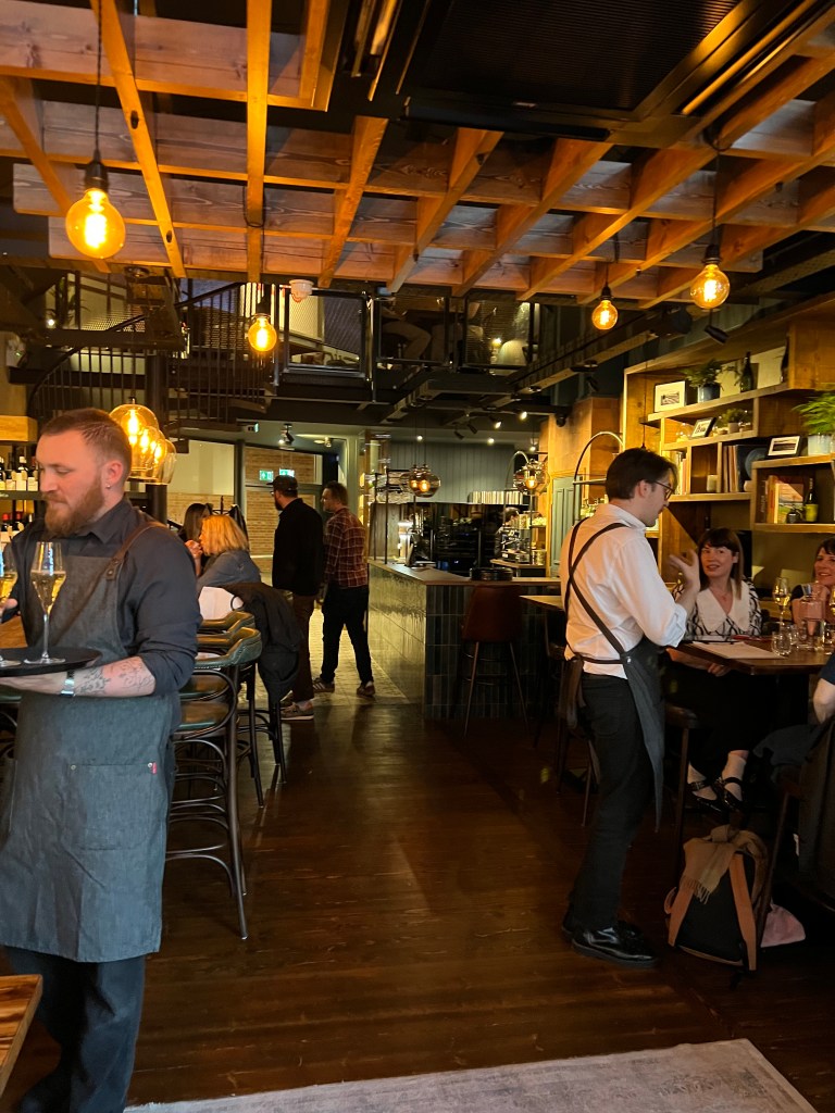 I am normally a red man as I usually only drink wine with a meal, and, being a carnivore, that is my go to. Tonight, however, I was with two good friends who are not averse to a glass or two of white, whilst just chilling. I decided to switch allegiances – of wine, rather than friends – and we took a second, more traditional, option and I asked them to chose something they already liked from the menu. We were splashing out on a bottle, or, as it turned out, two, so having three fingers frantically prodding the tablet screen seemed the recipe for disaster. After a short discussion we opted for a German Riesling, but were told that, as the wine bar had not yet fully opened, it had only just been consigned to the chiller and would not be at a suitable temperature for a little while yet.