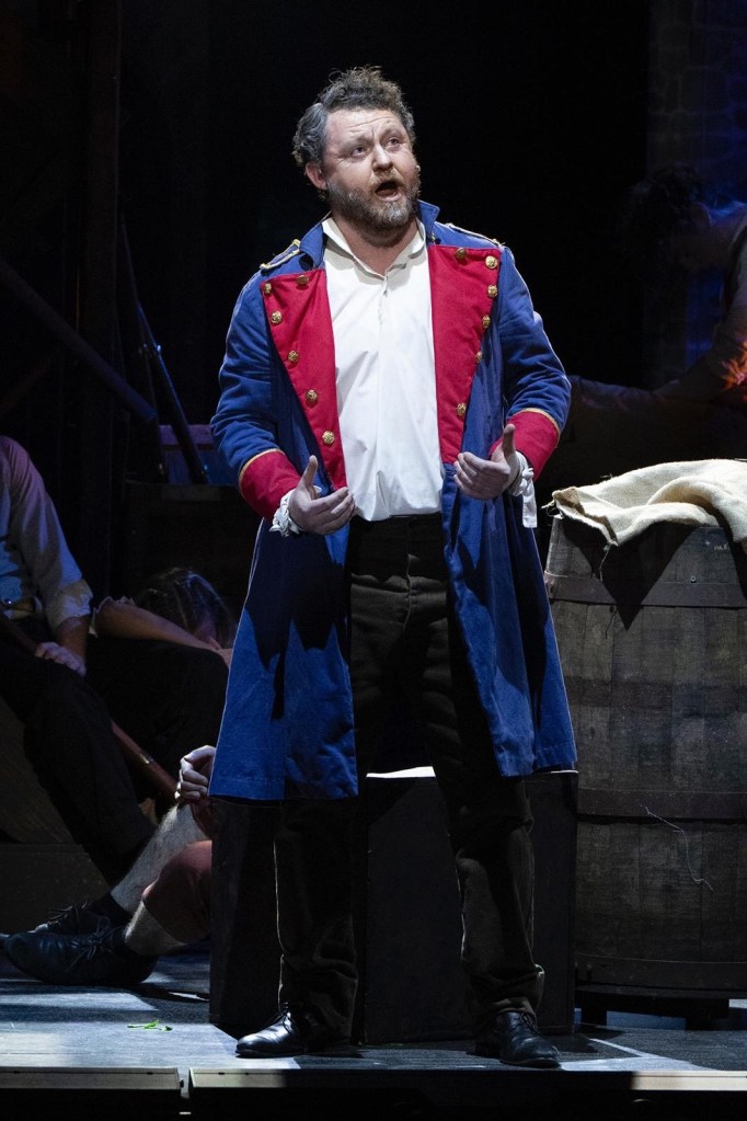 The structure of the musical is that it is sung, with no spoken dialogue. This made it even more difficult to review, as the actors all seemed to have great voices, but the production values were somewhat lacking in parts. The balance of the sound seemed out of kilter, even though the actors wore microphones, with the softer passages being crystal clear, whereas the big, full-throttle numbers, of which there were many, seemed to have been reined back, detracting somewhat from their clarity. I found this so strange, that I conferred with a couple of sets of paying customers who concurred with my analysis. I suppose that it could have been the other way round, with the belters being at the desired volume and the softer sections boosted, but, whatever, the effect was the same. I found the one exception, insofar as the male singers were concerned, to be Harvey Dewhurst, who played Marius, whose voice was able to transcend this effect.