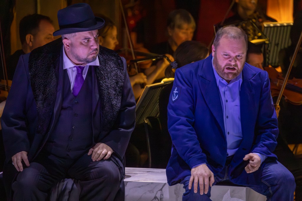 I might as well save myself some time here by copying and pasting my previous Opera North reviews – but I won’t. The Orchestra of Opera North under the baton of Antony Hermus and leader, Katie Stillman, were as impressive as ever, all the more so for being in plain sight. The Choir of Opera North – Chorus Master, Anthony Kraus – excelled, again the innovative positioning of the singers, adding an extra dimension to their superb voices. Aside from singing in the Dress Circle, they also serenaded us from a room adjoining the auditorium, the door of which had been left open, to give the impression that they were quite some distance away. That didn’t apply to me, however, as it occurred in the second half and during the interval I decided to move seats as I was flanked by two rather large chaps – I should talk – and parked myself in a row which was more or less empty. There was a reason for that – it was on a level with the open door from which the choir was giving it full bore, so I missed a few lines of singing by the main performers. It didn’t matter though as the words were on the screen. Stupid Boy!