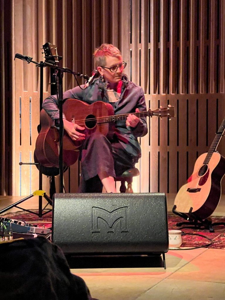 Karine Polwart is a Scottish folk singer who, it appears, also does a lot of other work nurturing new talent in that genre – including both of her children. She began her professional music career 25 years ago with a band called Malinky, but has been in quite a few collaborations since then, including one with Mary Chapin Carpenter. Tonight, however, she was performing solo, singing songs from her back catalogue. When I say performing solo, that is not strictly correct as she encouraged anyone familiar with her work to join in. This included the chaps on either side of me, to whom I would say, don’t give up the day jobs!