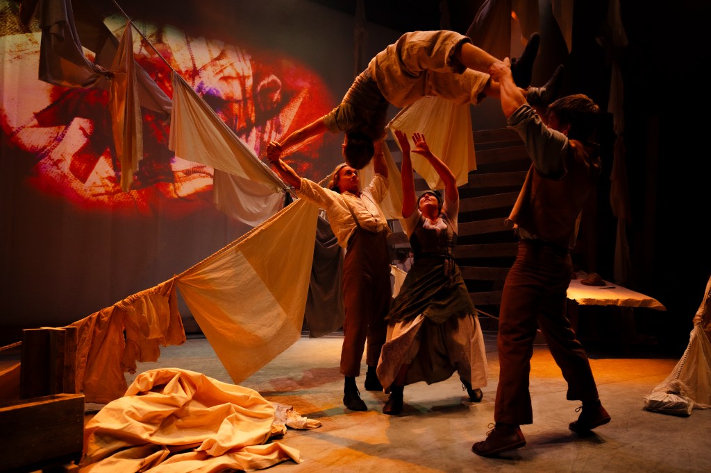 Leeds Playhouse is on a roll at the moment, the last four or five productions I have seen, whether their own or touring, have been as interesting, varied and spectacularly well performed as you could hope for. Tess was no exception, being a take on Thomas Hardy’s novel, Tess of the d’Urbavilles. This is the second adaptation of a classic I have seen this week, both were interpretations but as different from each other as they could possibly be. The last one was a comedy and this is performed by a group of circus artistes. There were no lions, tigers or elephants, made to perform tricks, as in my day, thank goodness, not even clowns who drove a car which fell apart. Having said that, the wheels certainly came off for Tess at the denouement.