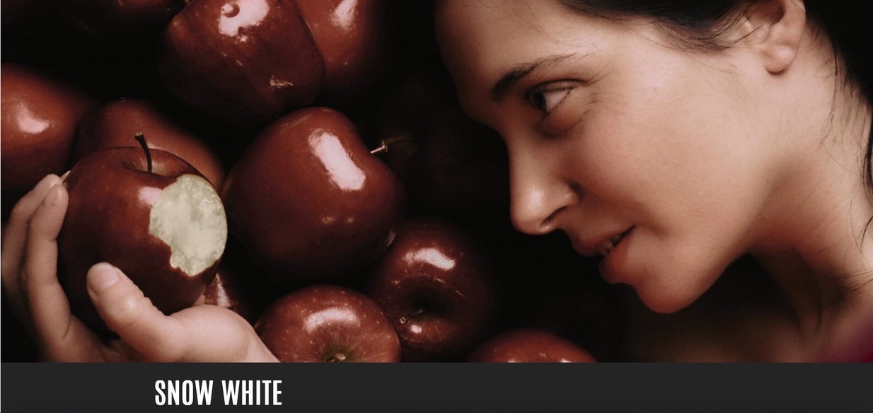 The story has been modified in several ways, all of which give it a more sinister feel. It begins in the same manner with a queen sewing by the window whilst the snow falls outside. She pricks her finger on the needle and three drops of blood fall onto the precipitation on the black window cill. This causes her to wish that she had a daughter with skin as white as snow, lips as red as blood and hair the colour of ebony. Lo and behold, shortly thereafter she finds out she is pregnant and the issue conforms with all her requirements. This is where it gets really dark; in the fairy tale, the Queen dies and the King remarries, but here it is he who shuffles off this mortal coil and the she who brings up Snow White, as she has been named, as a single parent. The Queen has a bit of a narcissus complex and believes herself to be the most beautiful woman in the world, or at least the palace, and, being in possession of a magic mirror, which is unable to tell lies, she asks of it each morning as to who is the fairest in the realm. I tried that with the bathroom mirror yesterday morning to see if it worked but the reflection still hasn’t stopped laughing! Years go by and one day the mirror confides that it is Snow White who has taken over the title of Miss Palace. To make matters worse, the Queen has asked her huntsman, who looks after the palace and a band of miners who provide it with supplies, to take a portrait of her to the King in the neighbouring castle, as a kind of early Tinder come on. As with users of the current version, she sends a likeness from several years before. This causes the King to swipe right and he shows up at a dance the Queen has organised. As you will probably have guessed, the King sees Snow White, who looks remarkably like the painting, and wants to spend the evening dancing with her.