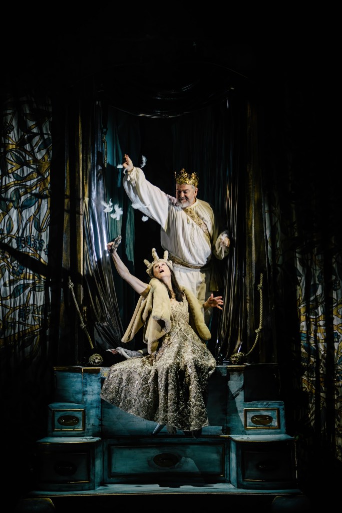 I must also mention the Set Designer, Phil Eddolls, whose creation of a central structure being able to rotate 360 degrees meant it acted as both the palace and the woods. In its former state, it had several drawers and methods to allow characters to transform without going off stage, and in its latter version it became a scary house covered in greenery.