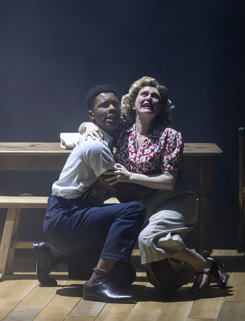 The acting from all concerned was brilliant, especially as it was a bit of an epic, the first half was an hour and three-quarters, the total running time being 3 hours 25 minutes. Daniel Ward as Gilbert, who had started a law degree in Jamaica before joining the RAF, was the epitome of a dignified man trying to stay focussed on making a life for himself and Hortense despite the setbacks encountered. Anna Critchlow matured from a young Hortense, naive enough to think that England was just as she had read about it, through to someone having to come to terms with the stark reality of the population of an alien country as uninformed about her background as she was about theirs. Another metamorphosis was undergone by Queenie, superbly played by Bronté Barbé who handled the stages of unfulfilled wife, committed volunteer, sexual awakening and back again without missing a beat. Mark Arends as Bernard was spot on as innocent nerd – a term not used in those days but is the best I could come up with – who had had a rude awakening in his war experiences. The role of Michael was split between two actors, Jordan Laviniere, the mischievous young lad, forever in trouble with his father, Everal A Walsh, and Rhys Stephenson the handsome stud making the most of his charisma. Although not a speaking part, Paul Hawkyard portrayed the hapless Arthur, veering from the absent minded, child-like victim of his condition to the more horrific side of it in the blink of an eye. Actions definitely speaking louder than words.